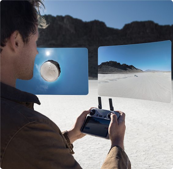 4. Nieskończone kreatywne możliwości w jednym ujęciu [3]: uchwyć pełny obraz 360° podczas jednego lotu. W postprodukcji możesz zmieniać perspektywę i tworzyć wiele różnych ujęć z jednego nagrania.