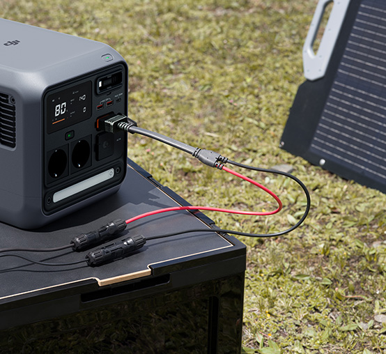 2. Wbudowany moduł MPPT umożliwia podłączenie paneli fotowoltaicznych za pomocą kabla DJI Power MC4 Solar Power Charging Cable i efektywne ładowanie energią słoneczną.