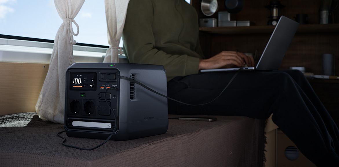 Niezależnie od tego, gdzie się znajdujesz, możesz z łatwością przygotować Power 1000 Mini do działania. Po podłączeniu do standardowego gniazdka sieciowego i uruchomieniu trybu Fast Recharge stacja naładuje się od 0% do 100% w około 75 minut, a do 80% – w około 58 minut. Nawet jeśli zapomnisz naładować ją przed wyjazdem, nie musisz się przejmować – zanim się spakujesz, będzie gotowa do pracy! Urządzenie zostało też wyposażone w ładowarkę samochodową 400 W, która w połączeniu z odpowiednim kablem (sprzedawanym oddzielnie) umożliwia pełne naładowanie w około 160 minut. Podobny czas można uzyskać przy użyciu paneli fotowoltaicznych – stacja ma zintegrowany moduł MPPT 400 W. Dodatkowo energię można uzupełniać za pomocą zwijanego kabla USB-C 100 W albo przez port USB-C, co daje jeszcze większą swobodę.